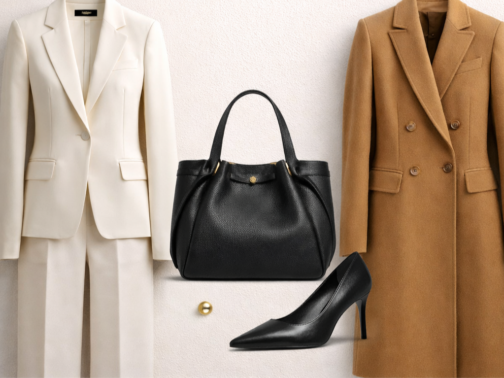 • One controlled accessory (minimal gold, structured handbag, polished heel)